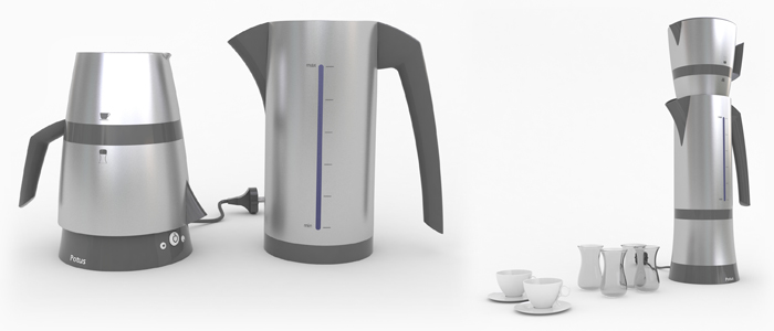 günümüzde Türk evlerinde en çok kullanılan küçük ev aletlerinden olan türk kahvesi ve çay makinesinin aynı bünyede toplayan bir ürün tasarımıdır. Ürün ev kullanıcılarının bu iki farklı işlem için iki farklı makinenin satın alınması ve depolanması sorununu minimize etmeyi amaçlamıştır. Potus un tasarımında üst gövde ters çevrilerek kahve cezvesi olarak kullanılmaktadır