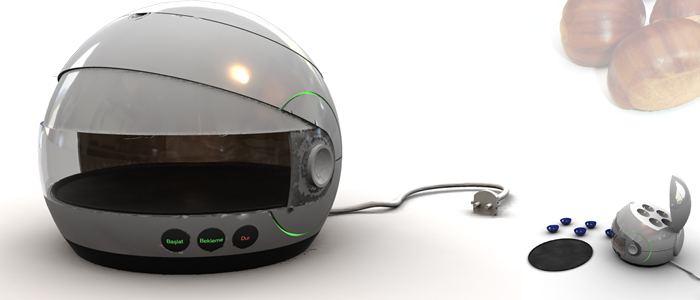 giderek yok olan bir yemişi tekrar evlere taşımayı hedeflemektedir. Ürünün formu pişmiş bir kestane formundan yola çıkılarak geliştirilmiştir. Ürünle beraber depolanabilen avuç içi kaplar eskiden soba başında kestane pişirilen sıcak ortamları geri getirmek amacı taşır.